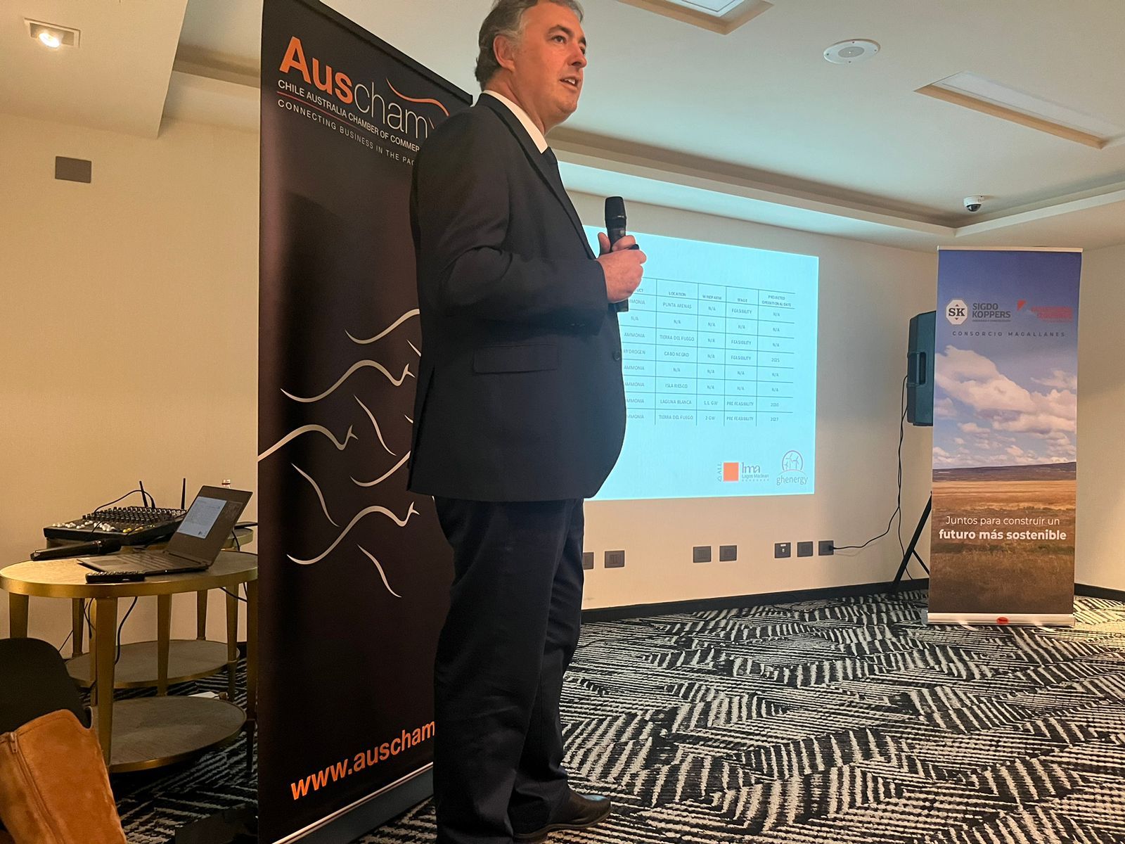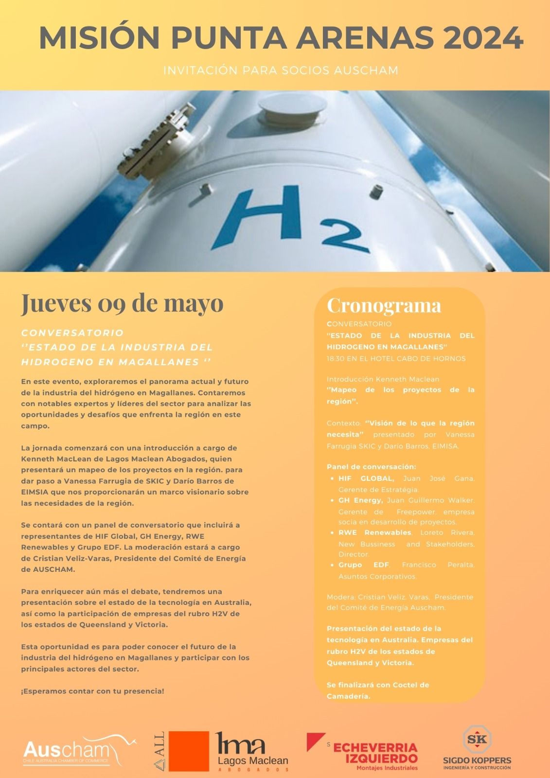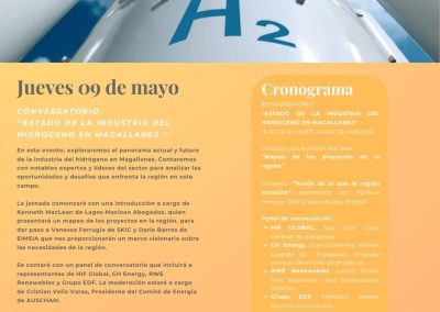 Nuestros socios Kenneth Maclean y Angelina Morales Costa participaron del Encuentro sobre la Industria del Hidrógeno Verde, que se llevó a cabo en Punta Arenas. El Encuentro, que fue organizado por la Cámara Chilena Australiana de Comercio (Auscham), estuvo centrado en la promoción y exploración de oportunidades relacionadas con la industria del Hidrógeno en la Región de Magallanes, y participaron de él relevantes actores de esta industria.
